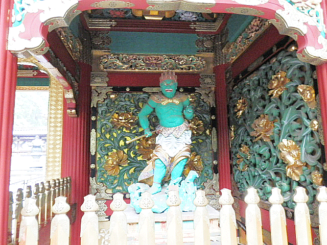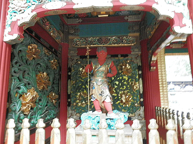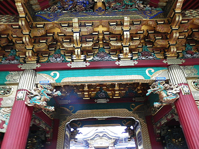 承応2年(1653年)大猷院に造営された門であり装飾がすべてボタンの花で統一されていることから別名「牡丹門」 と呼ばれ、全体が黒漆と金を基調に華麗な仕上がりとなっています。東照宮でいえば陽明門にあたるのが夜叉門です。